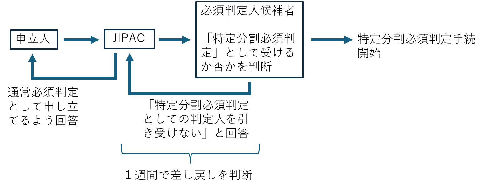 特定分割必須判定手続として判定するか否かの判断結果によっては、